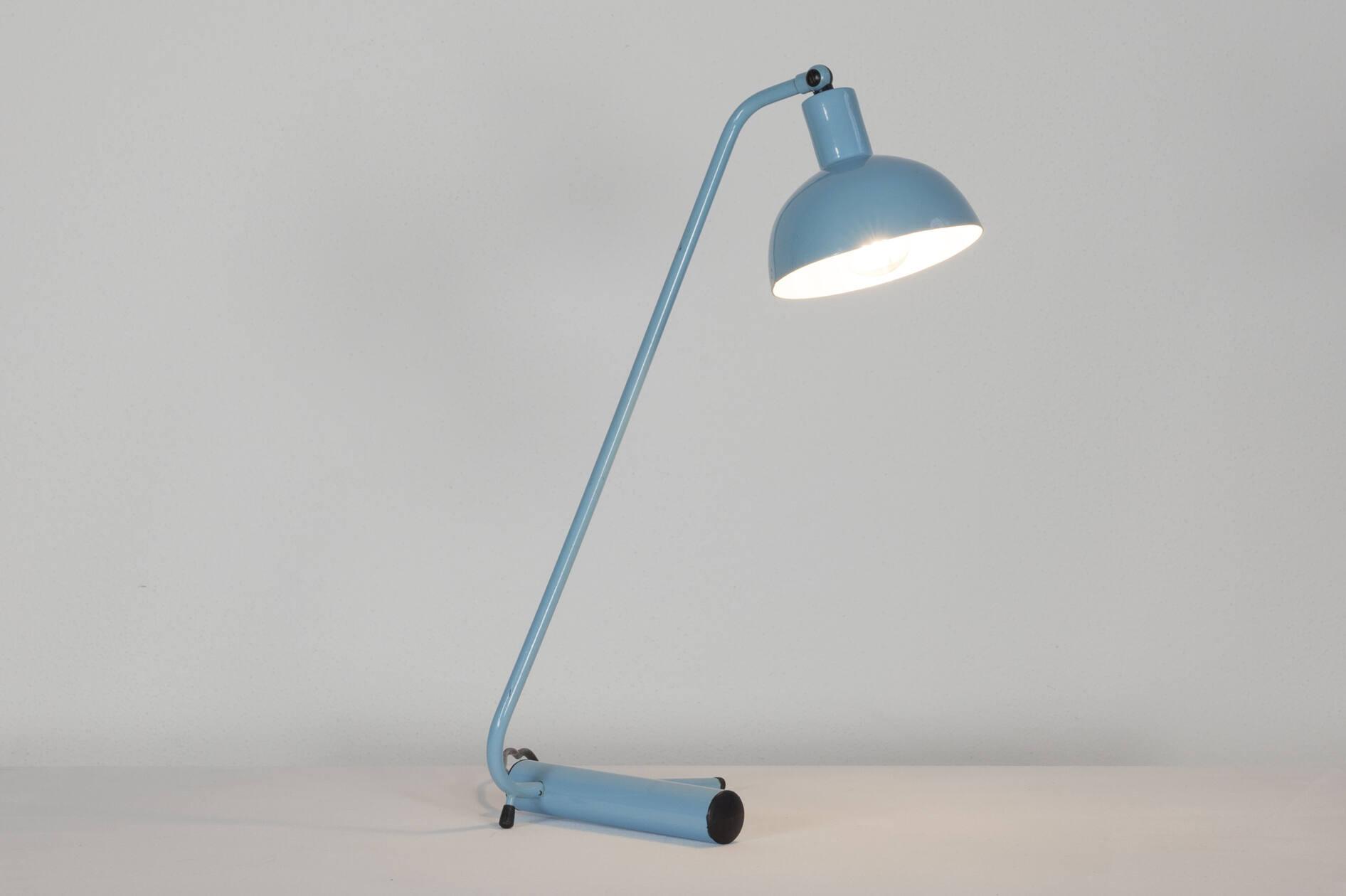 Hellblau lackierte italienische Tischleuchte - Schreibtischleuchte aus Aluminium. Das Schirmchen lässt sich in verschiedene Positionen drehen. 1960iger Jahre