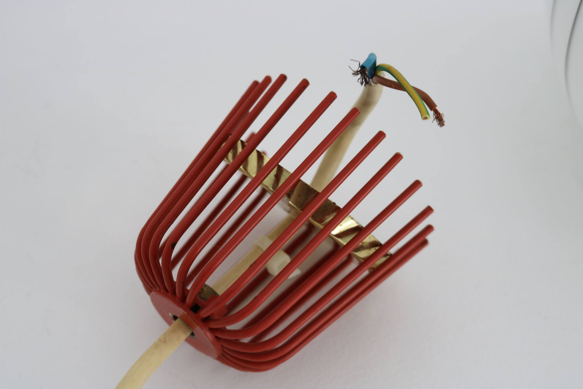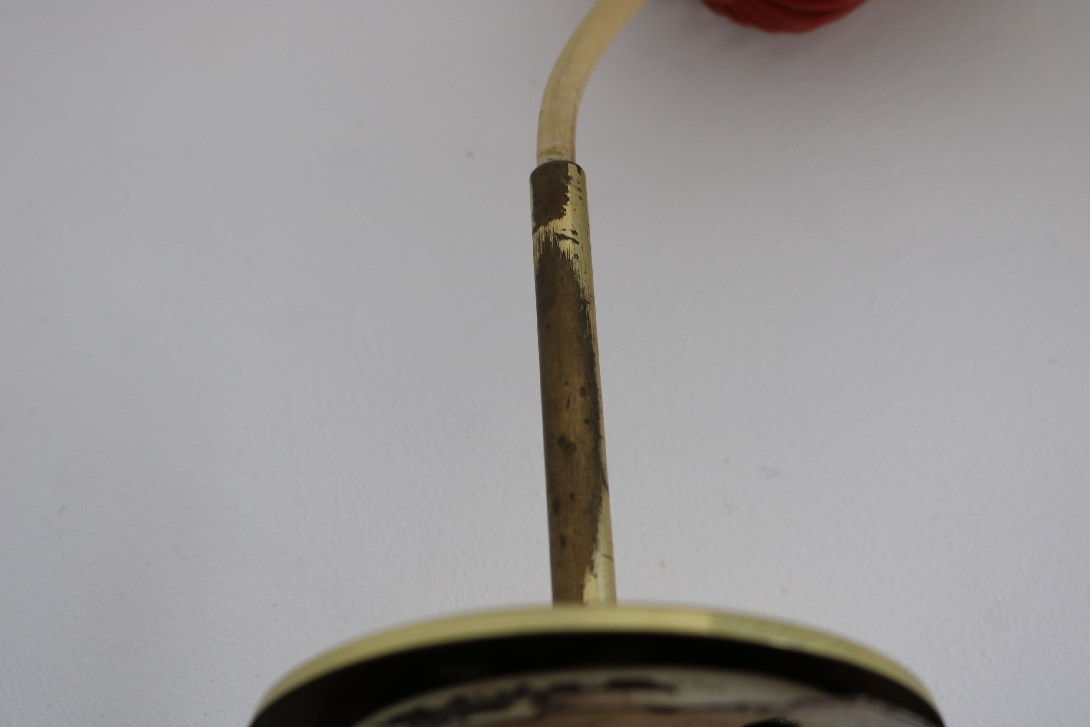Große Vintage-Pendelleuchte mit Opalglasschirm mit schwarzen feinen Streifen, 1950iger Jahre