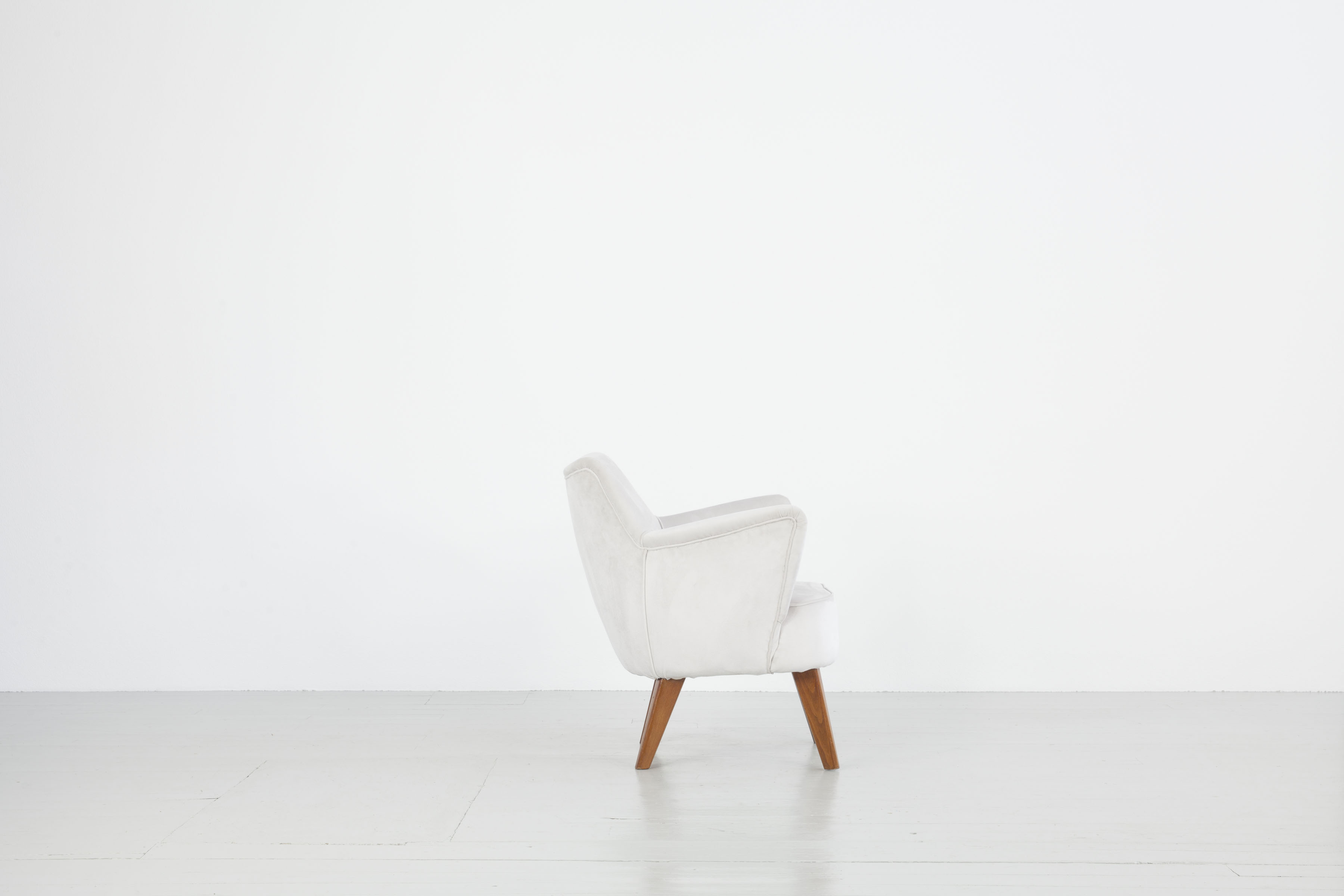 Pair of armchairs with white velvet cover and walnut legs. Design for the transatlantic ship "Augustus". Production Cassina. Italy 1950.
