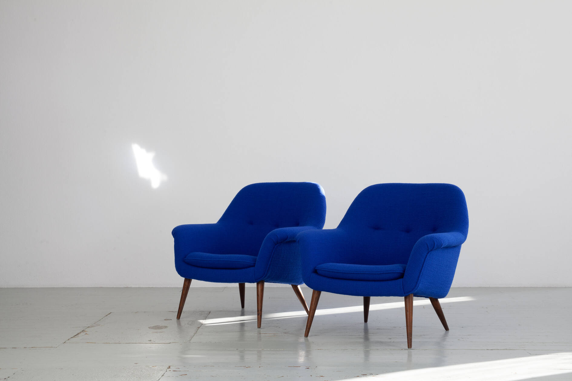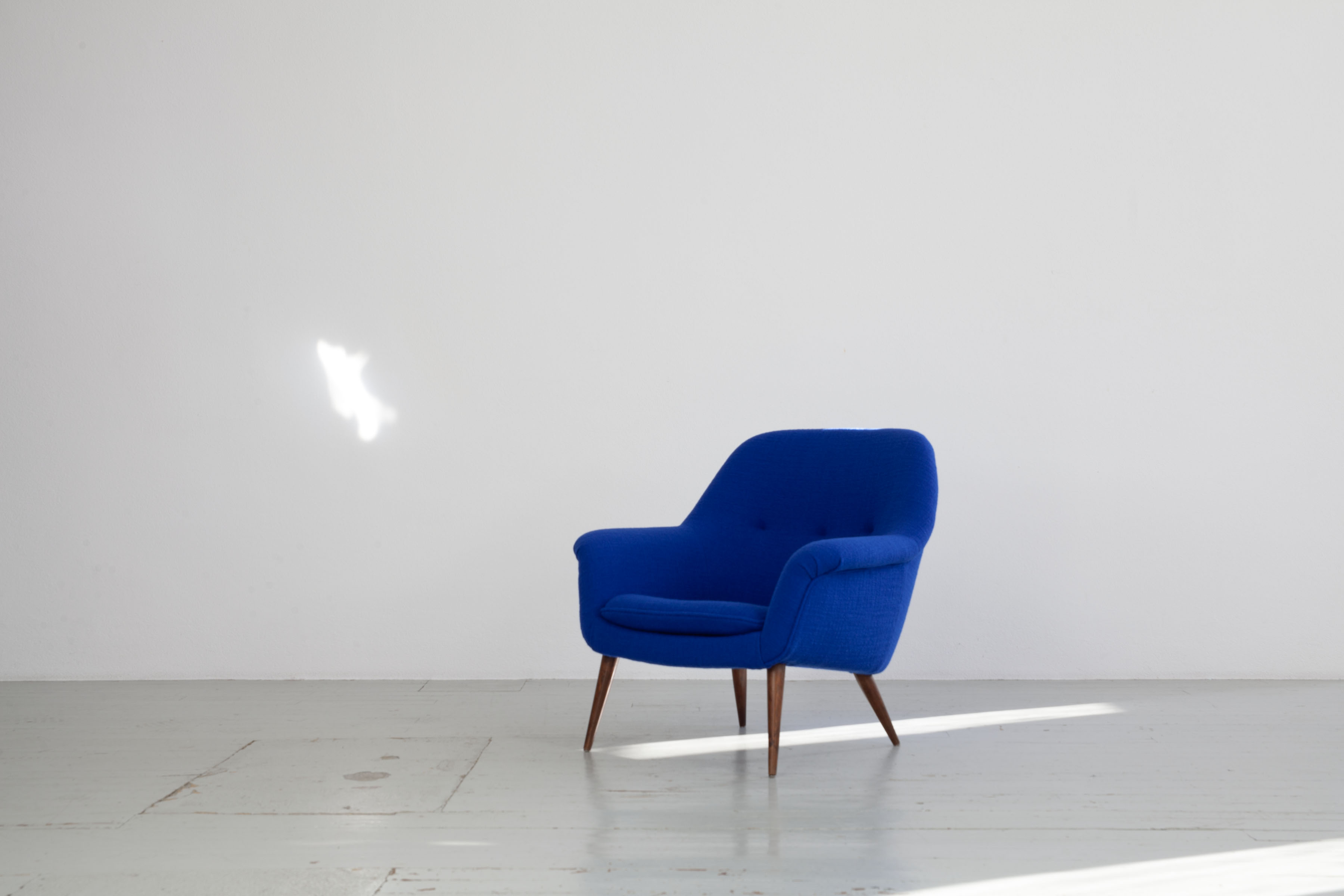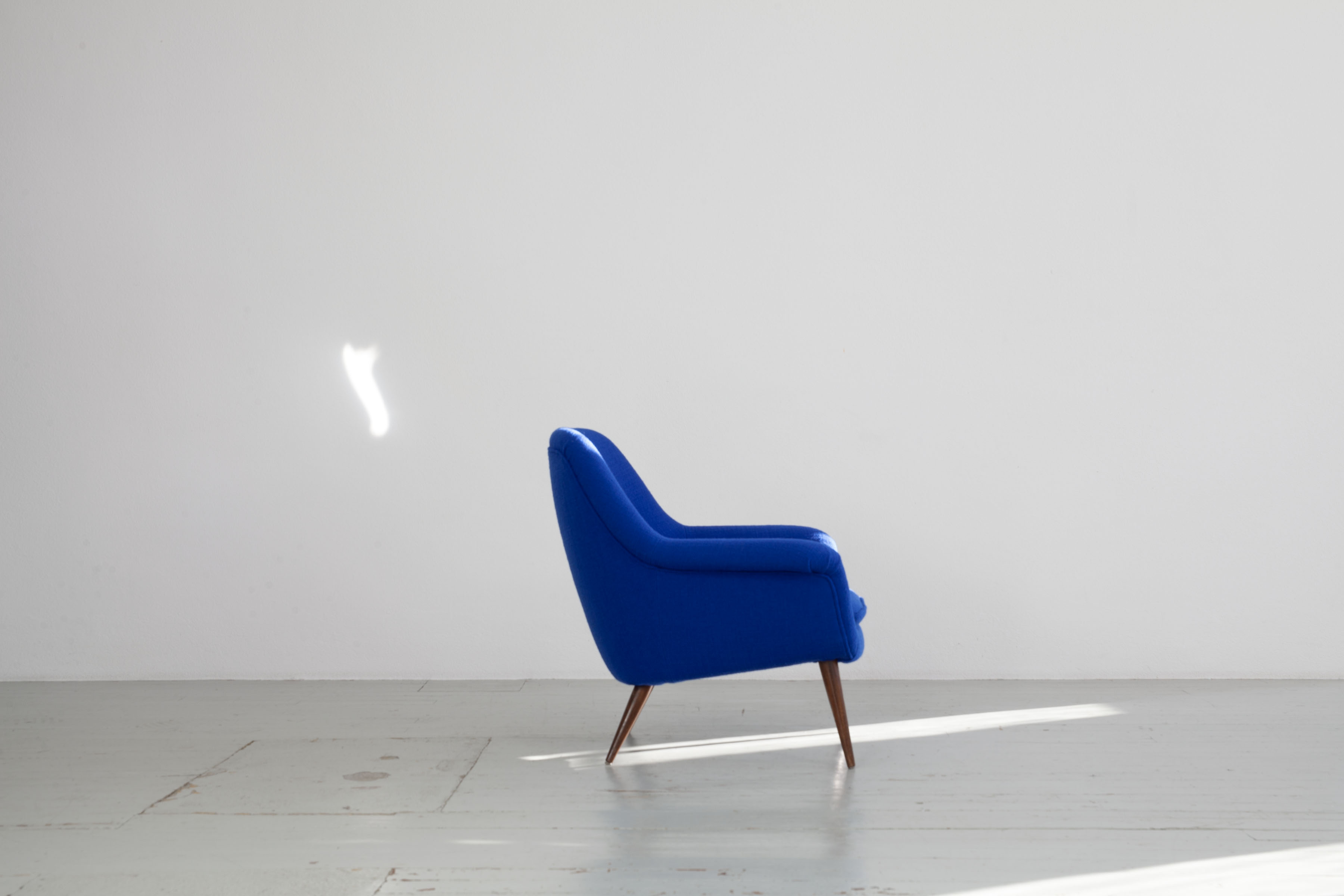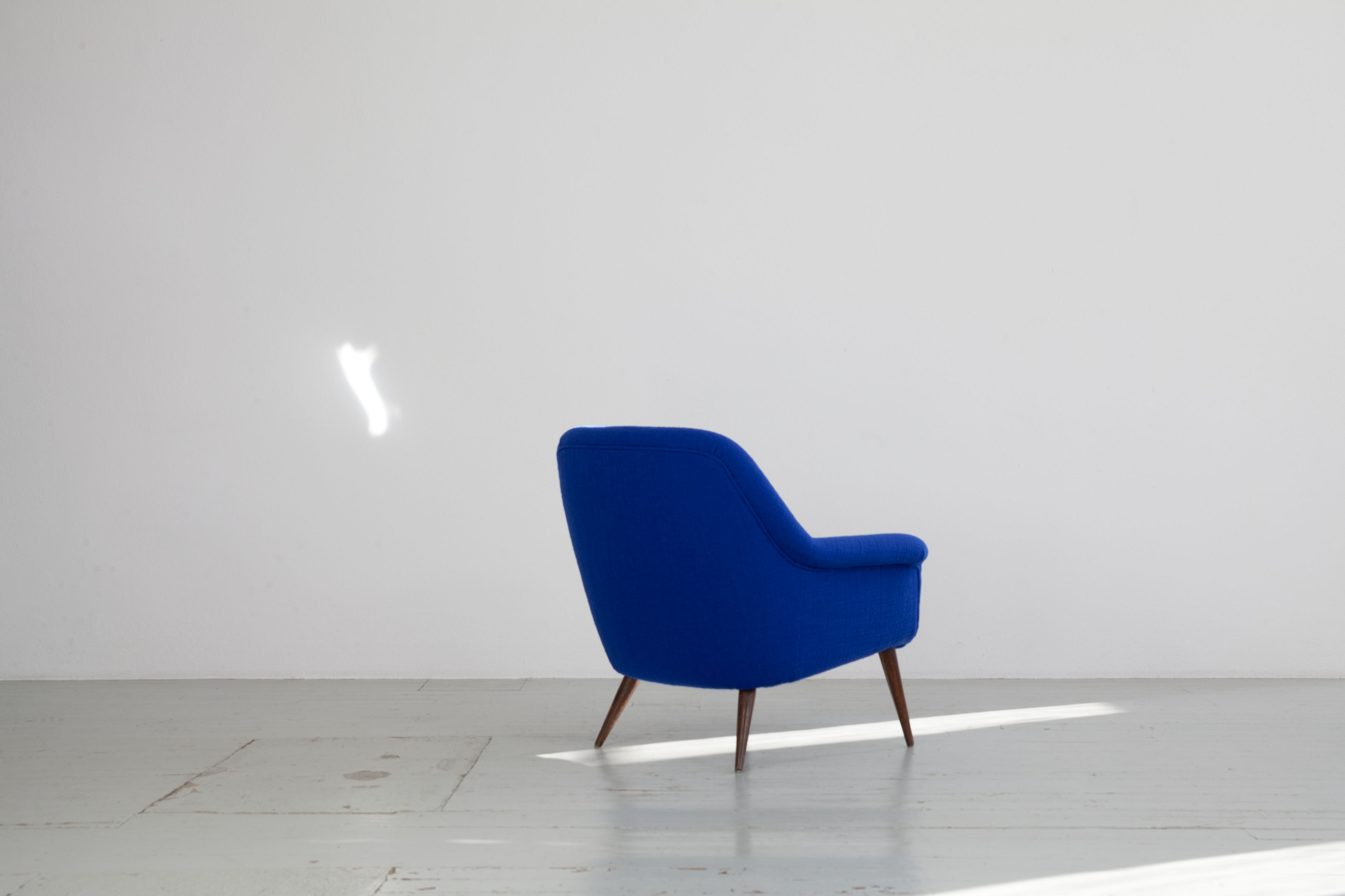 This armchair model “1101” was designed by Giovanni “Nino” Zoncada and manufactured by the Italian company Cassina. The original manufacturer’s label is still present on one of the chairs.