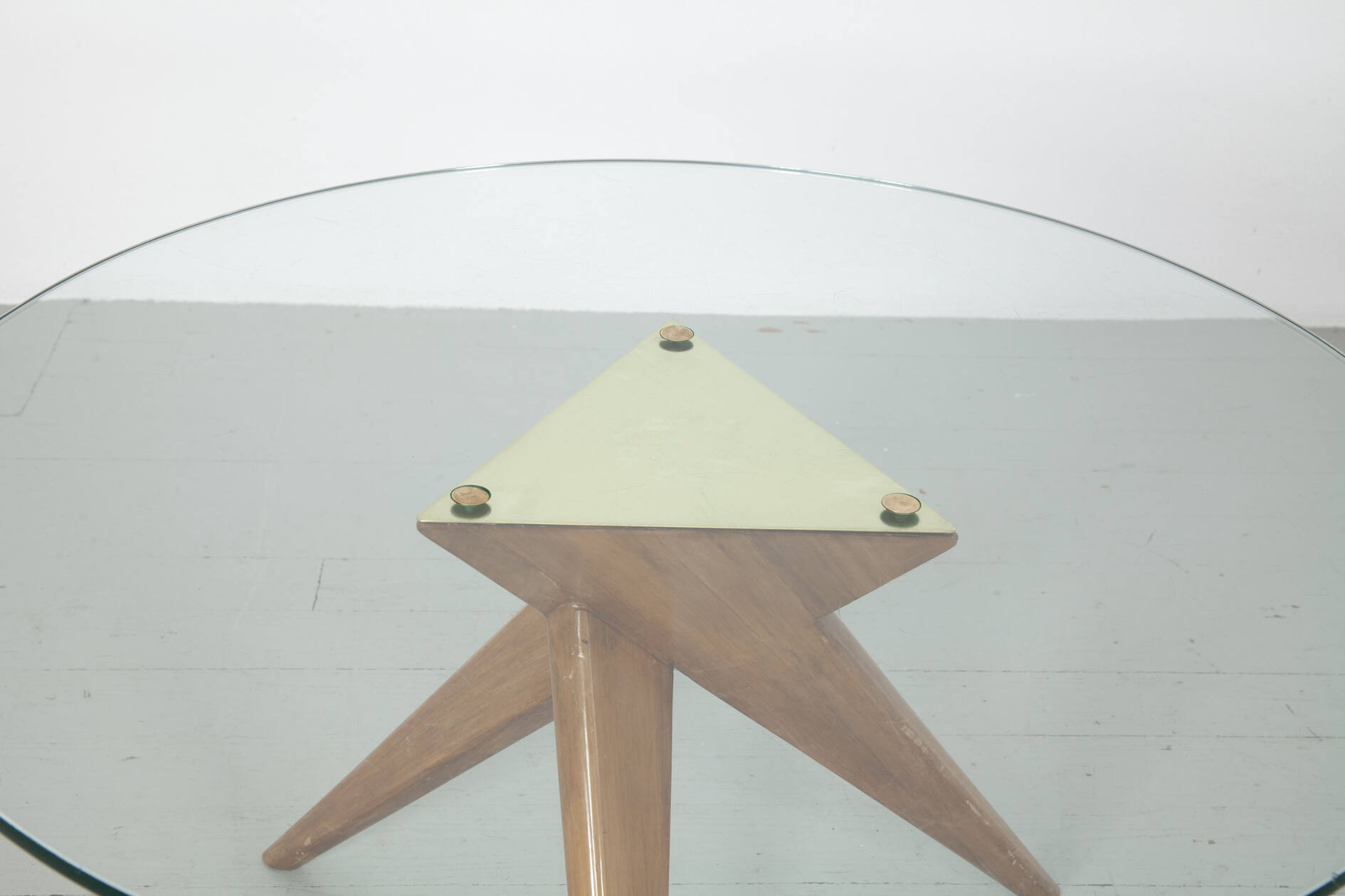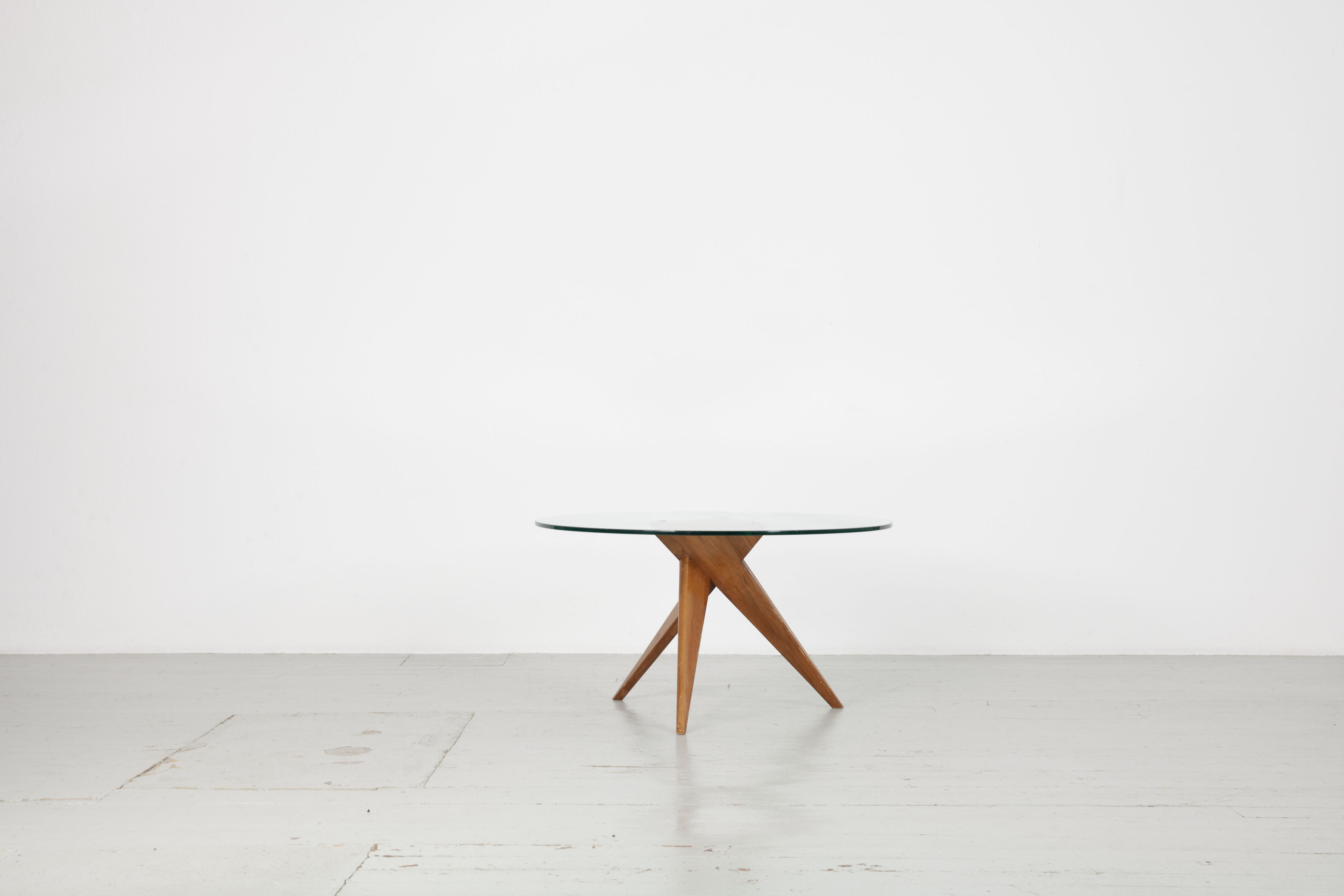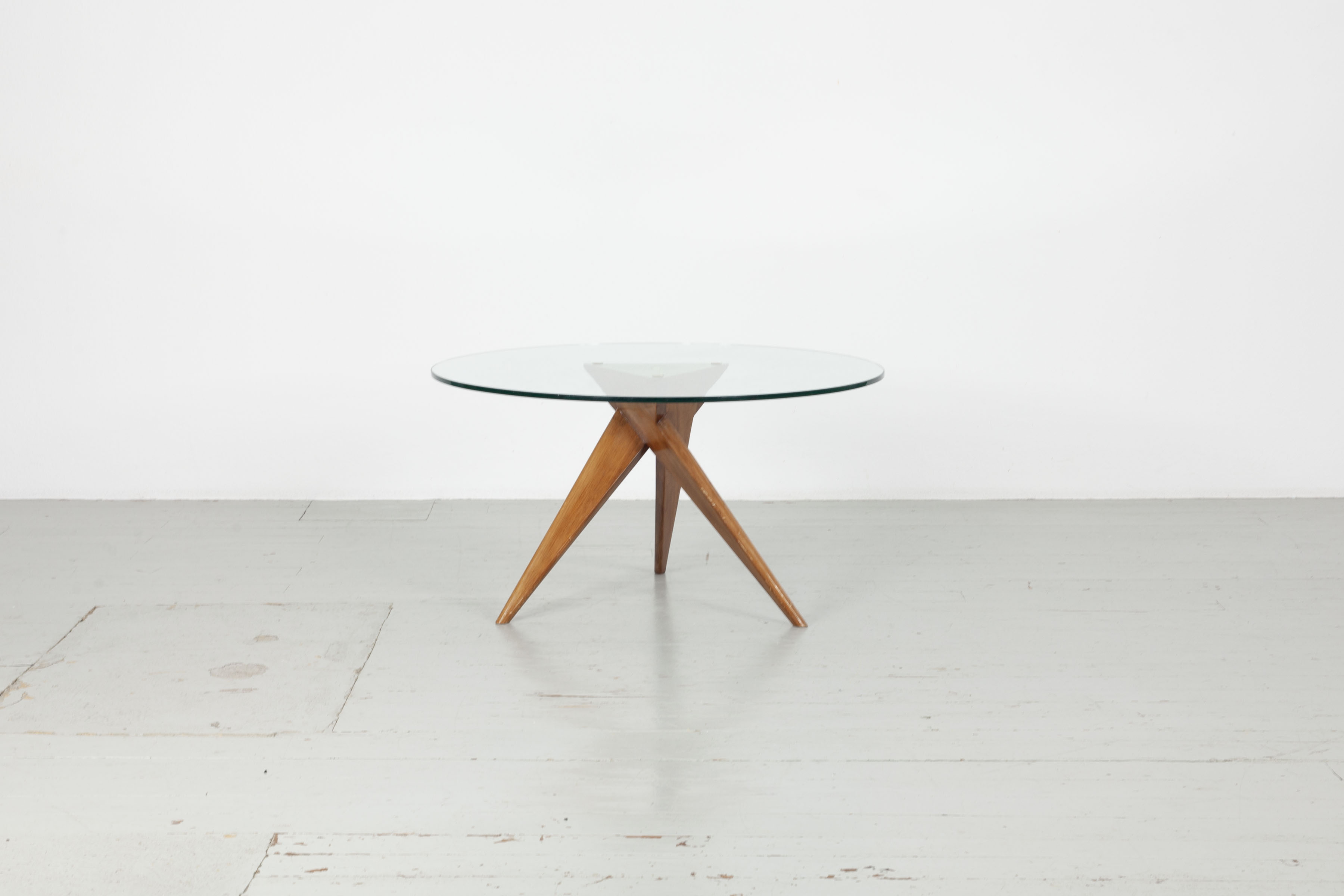 Beistelltisch, 1940er Jahre. Gestell aus Ahornholz, anilingefärbt, mit Messingdetails und Glasplatte.
