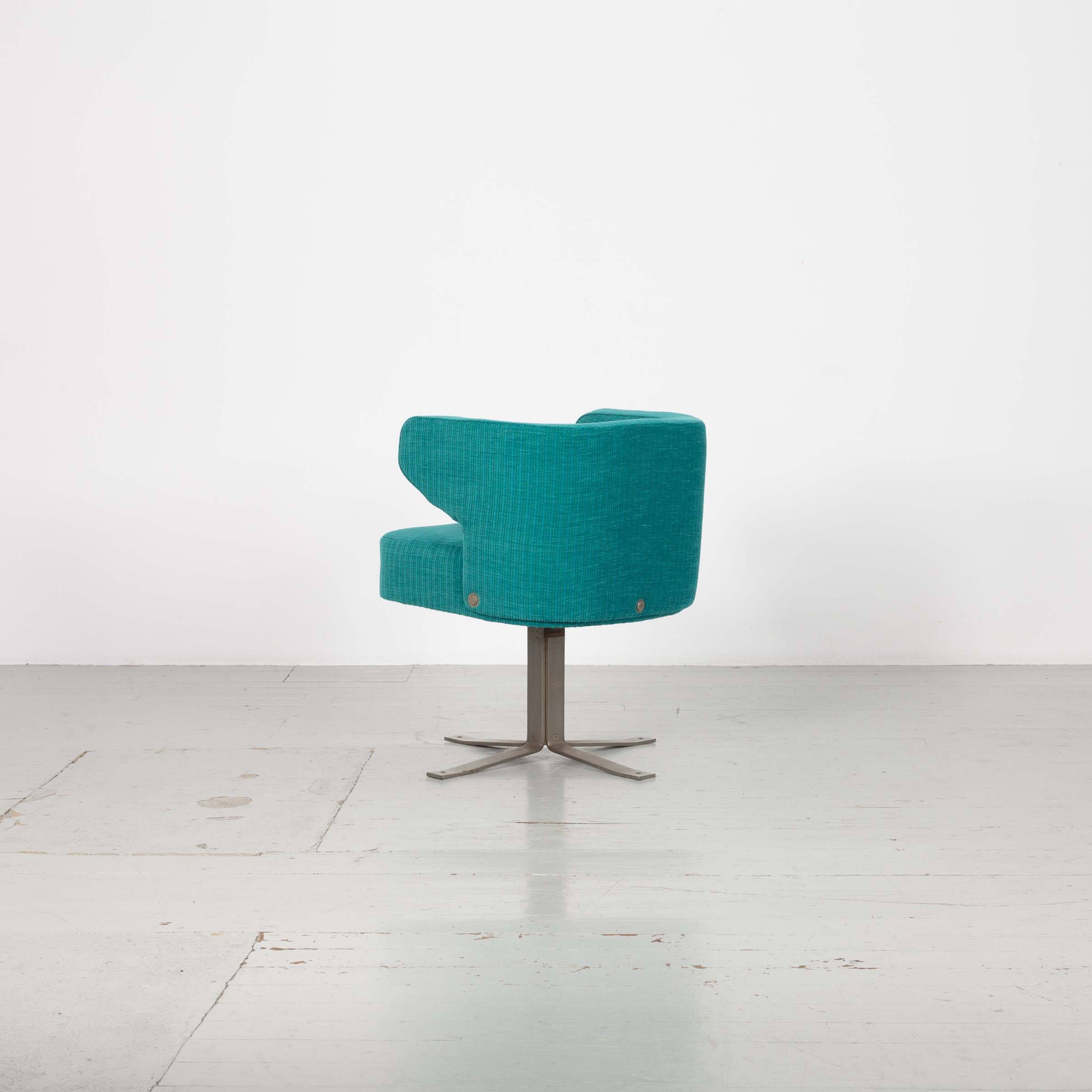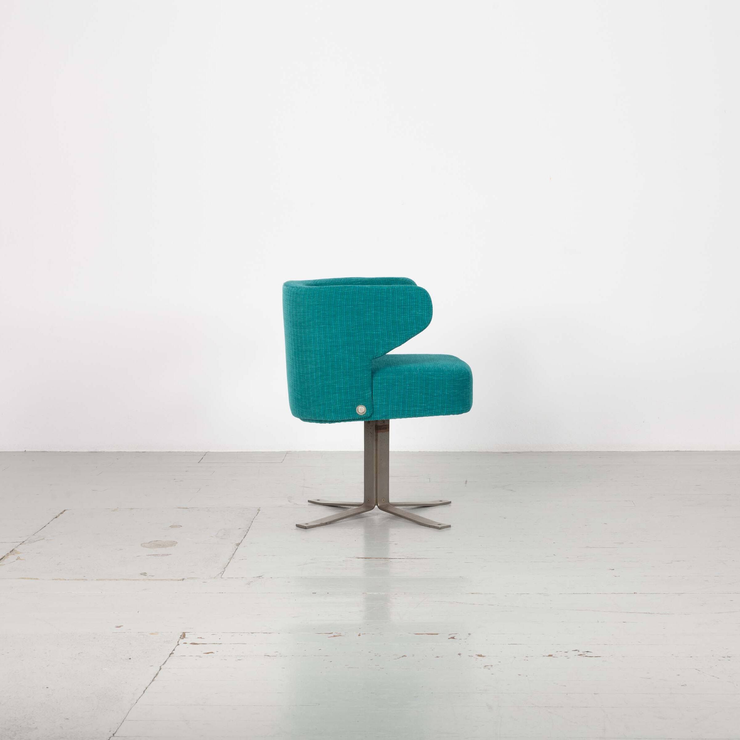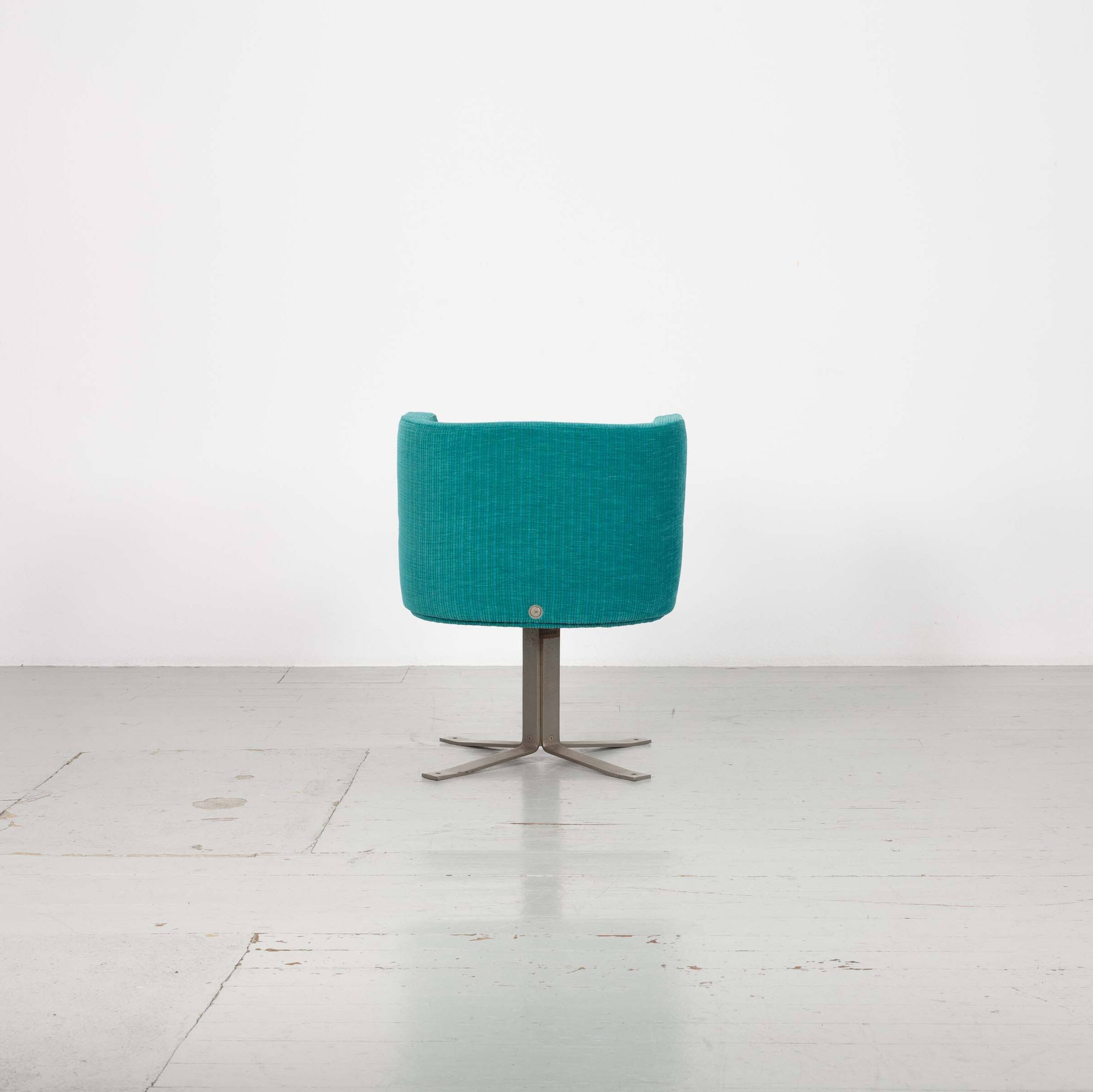 Swivel chair model “Poney,” designed by Giulio Moscatelli, produced by Formanova in Italy in the 1970s. Chrome-plated metal base – water blue vintage fabric cover.