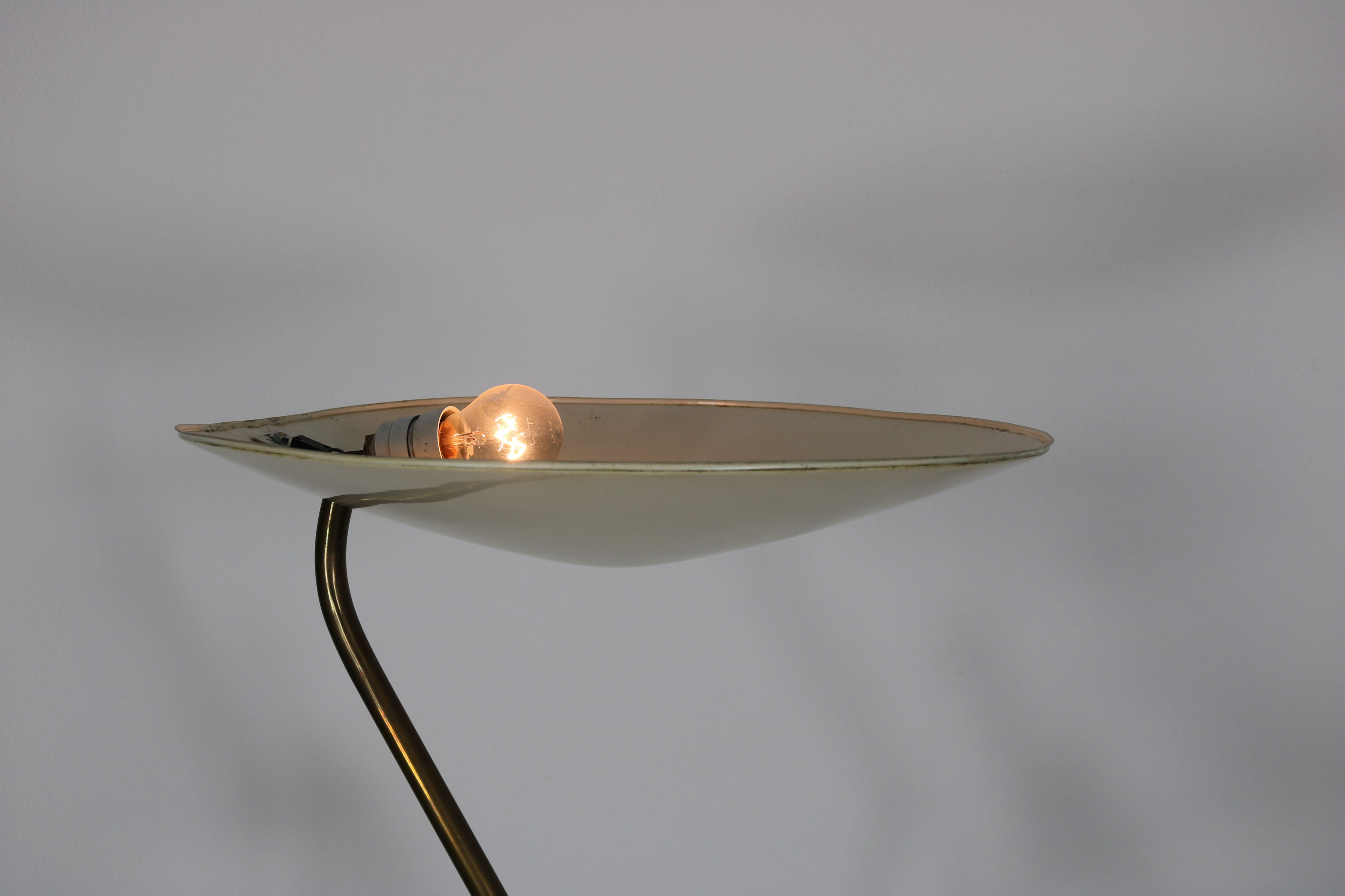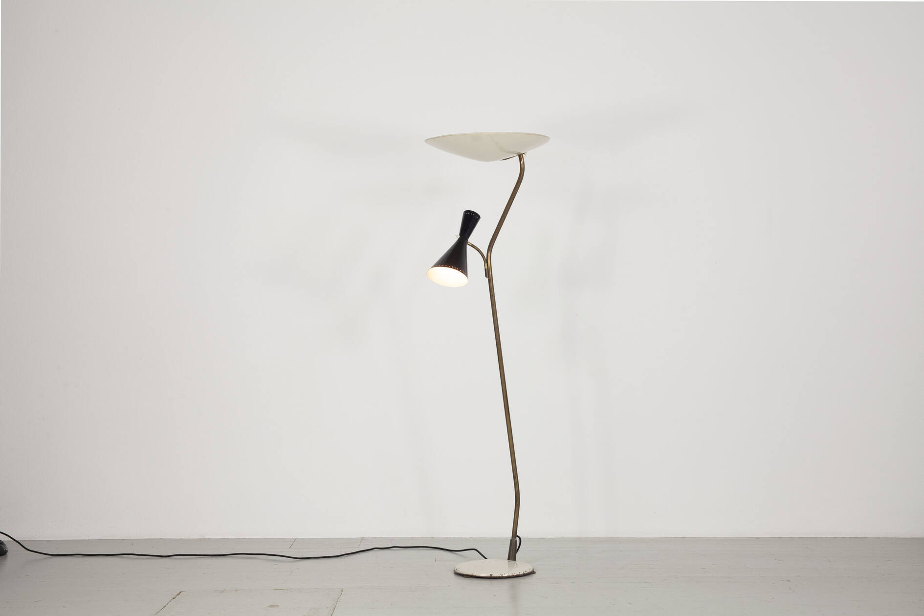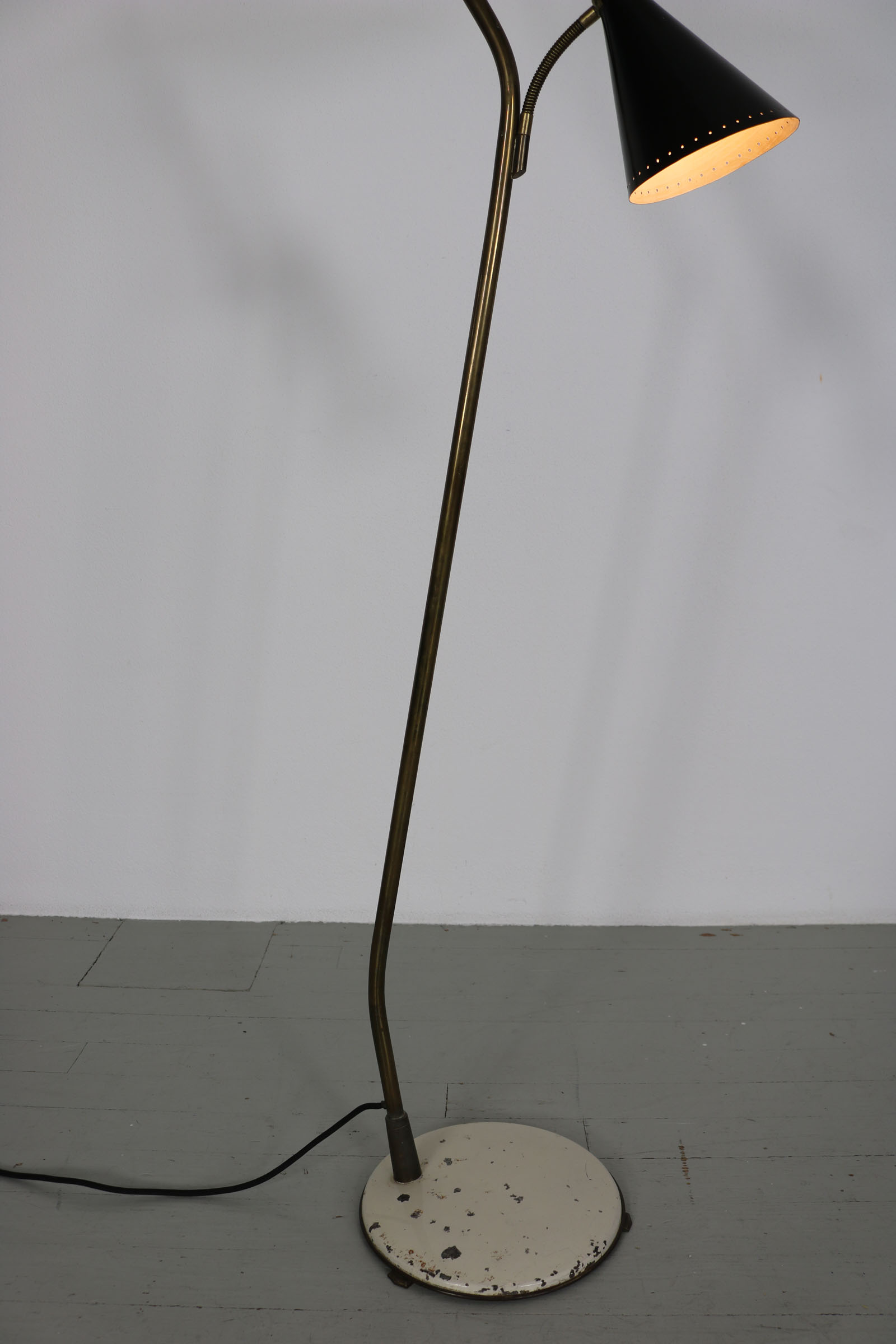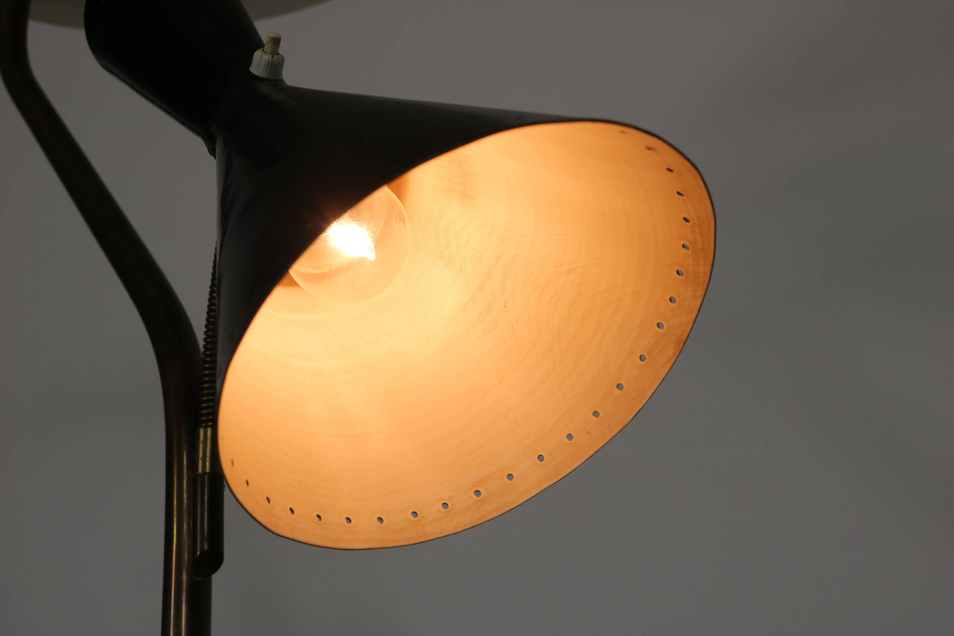 Floor Lamp - Manufactured by Eberth Zürich, Switzerland, 1950s. This brass floor lamp has lacquered metal shades with 2 functions - as an uplight and as a reading light.