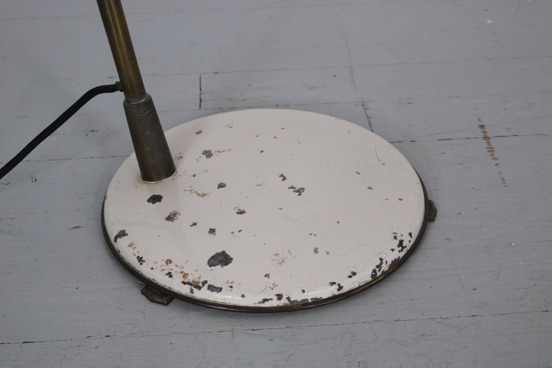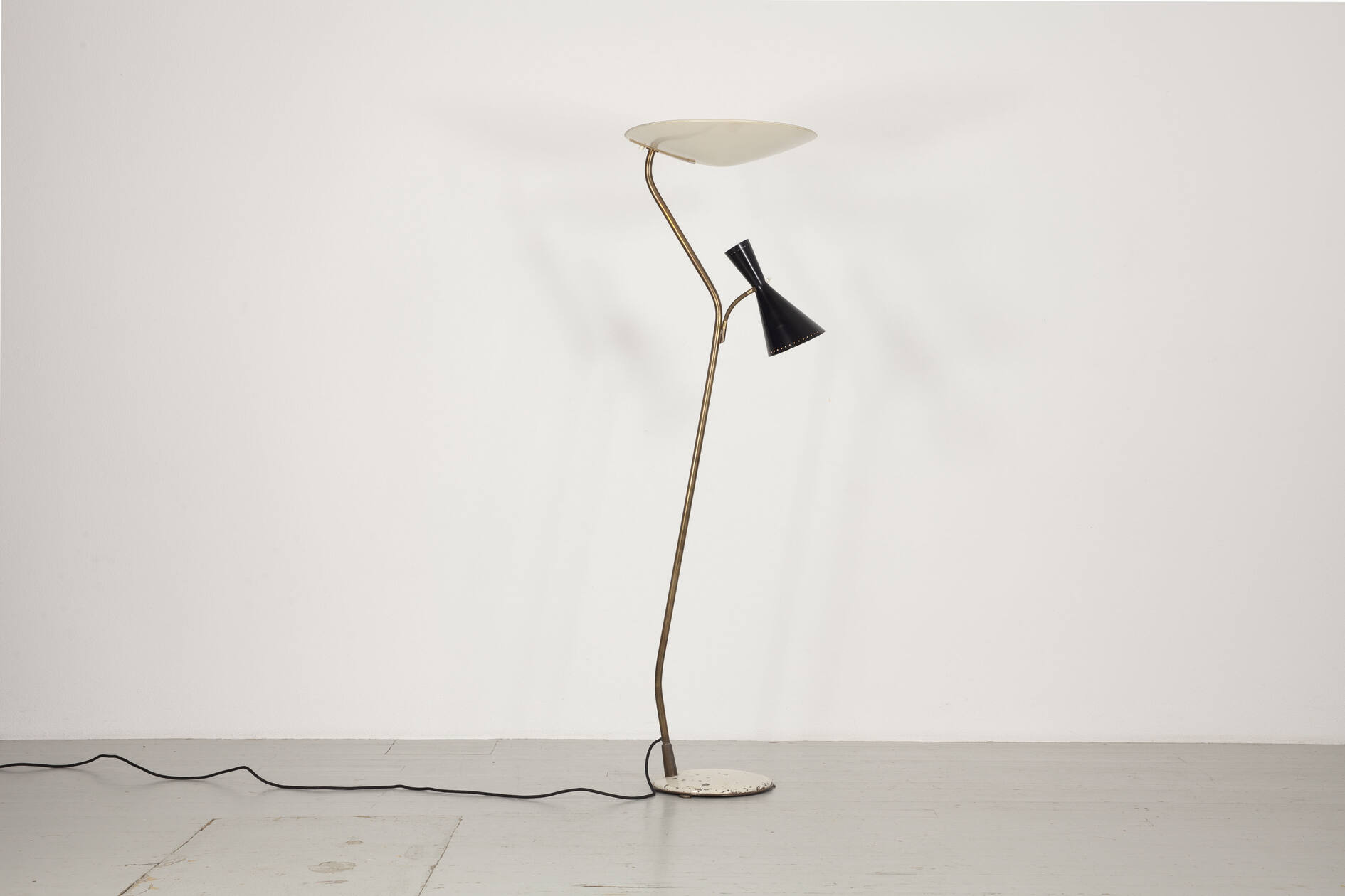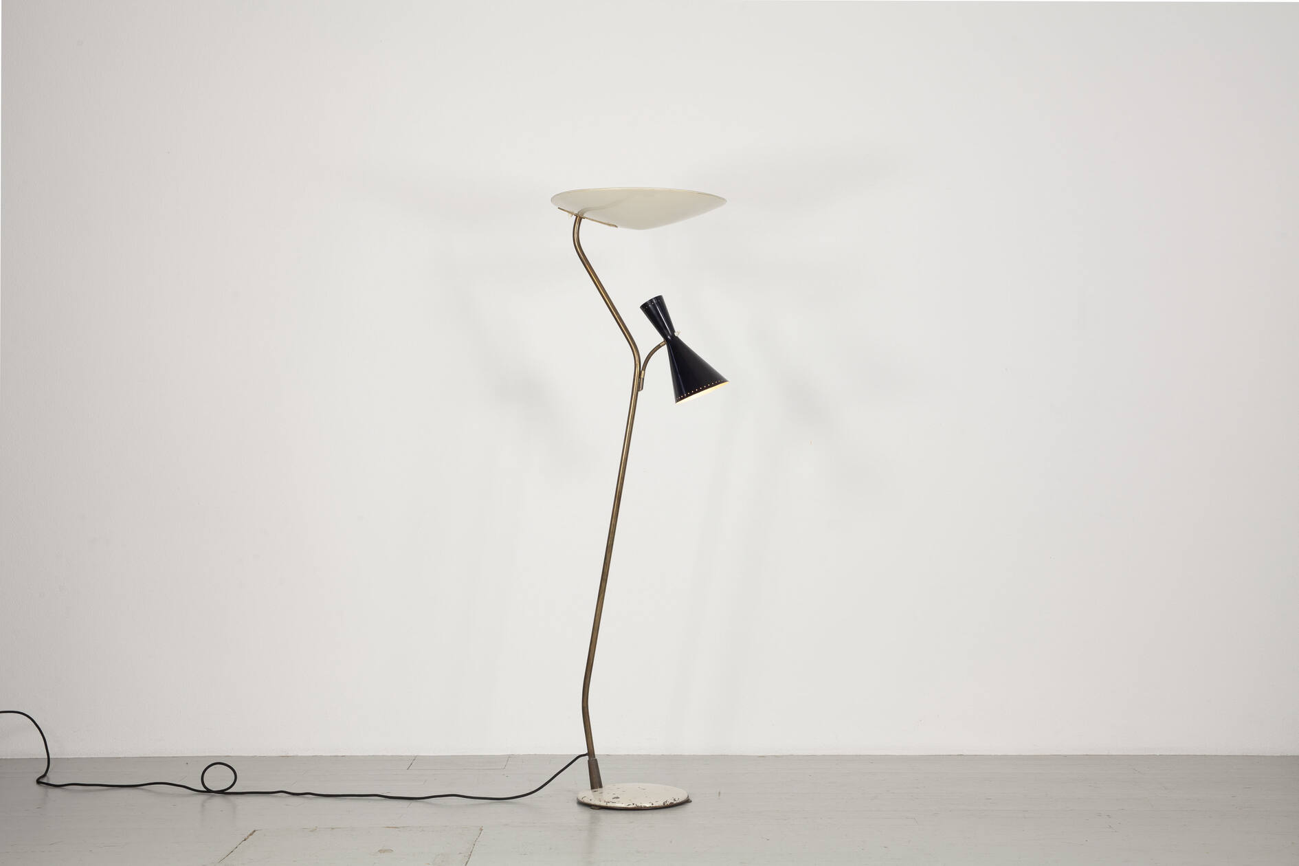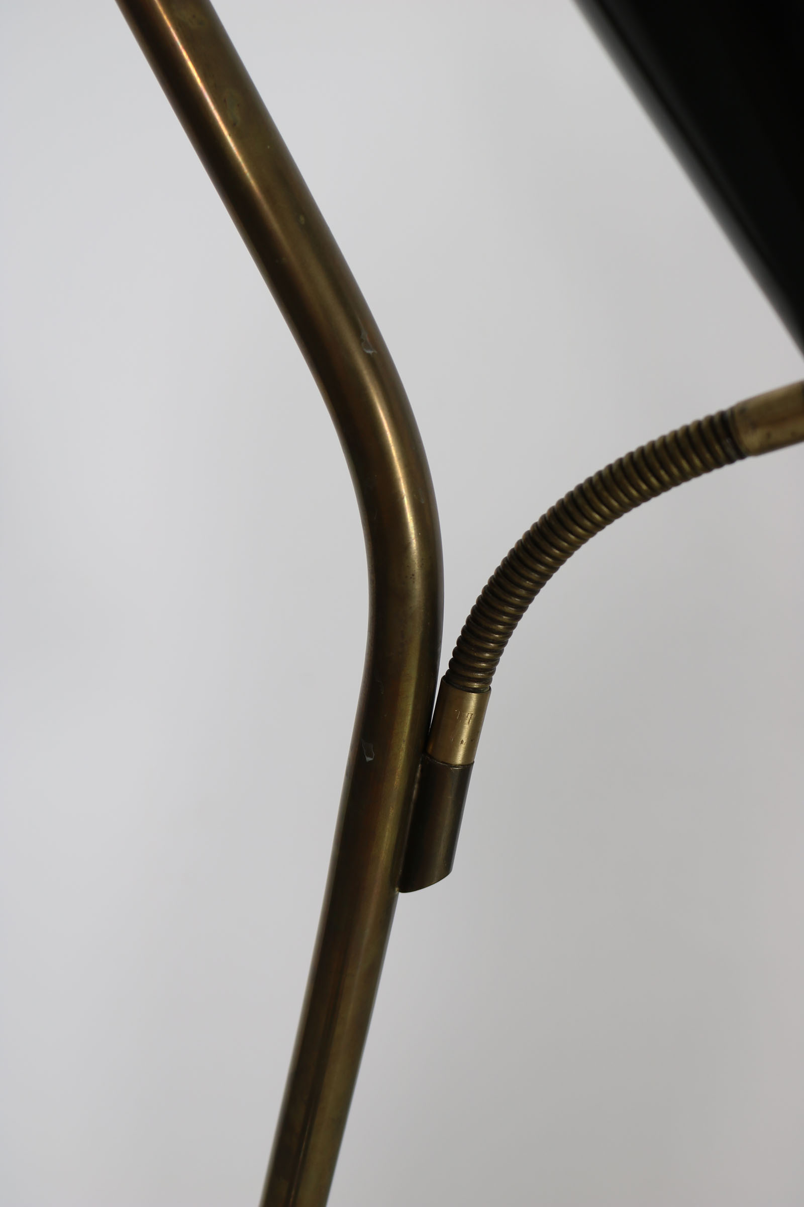 Floor Lamp - Manufactured by Eberth Zürich, Switzerland, 1950s. This brass floor lamp has lacquered metal shades with 2 functions - as an uplight and as a reading light.