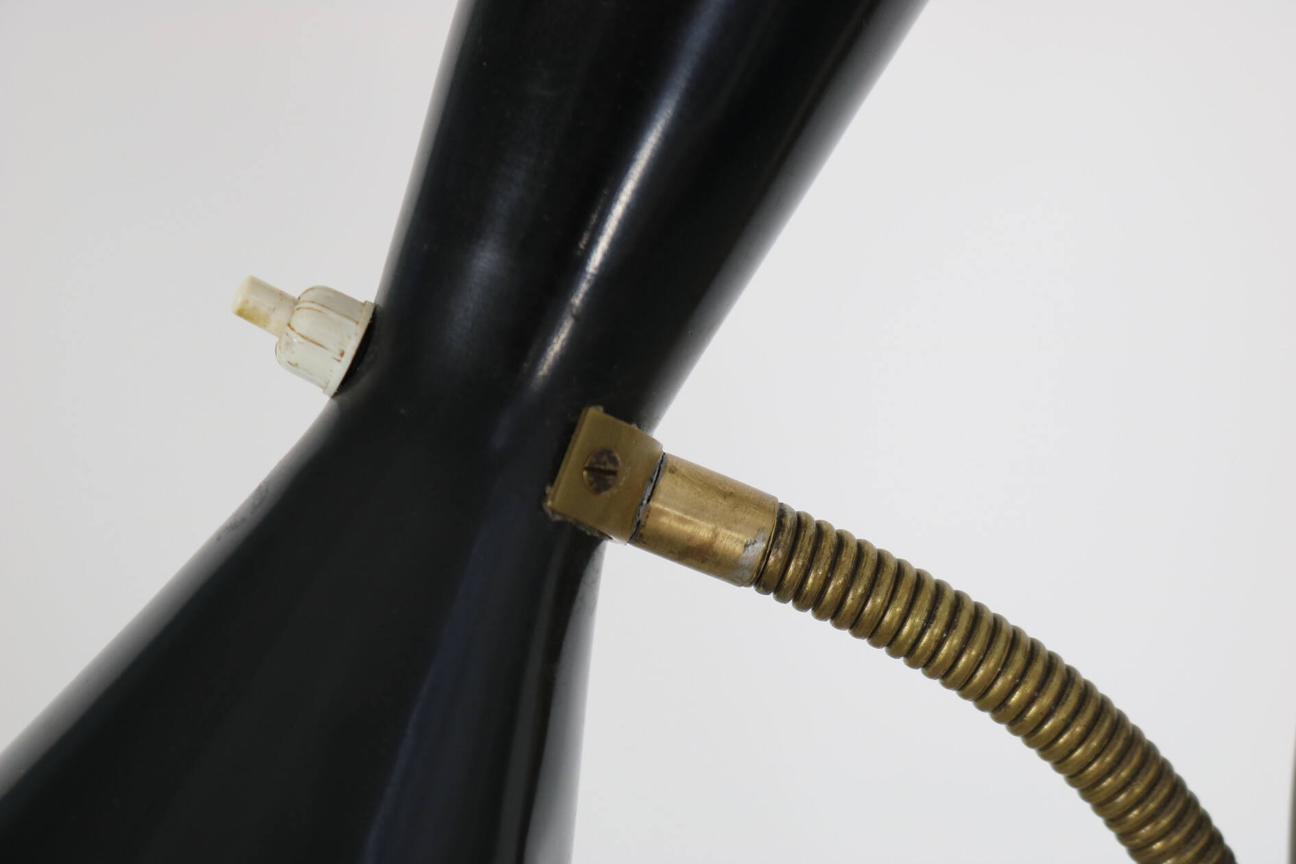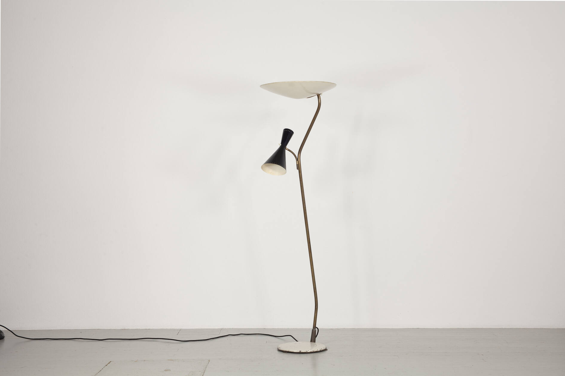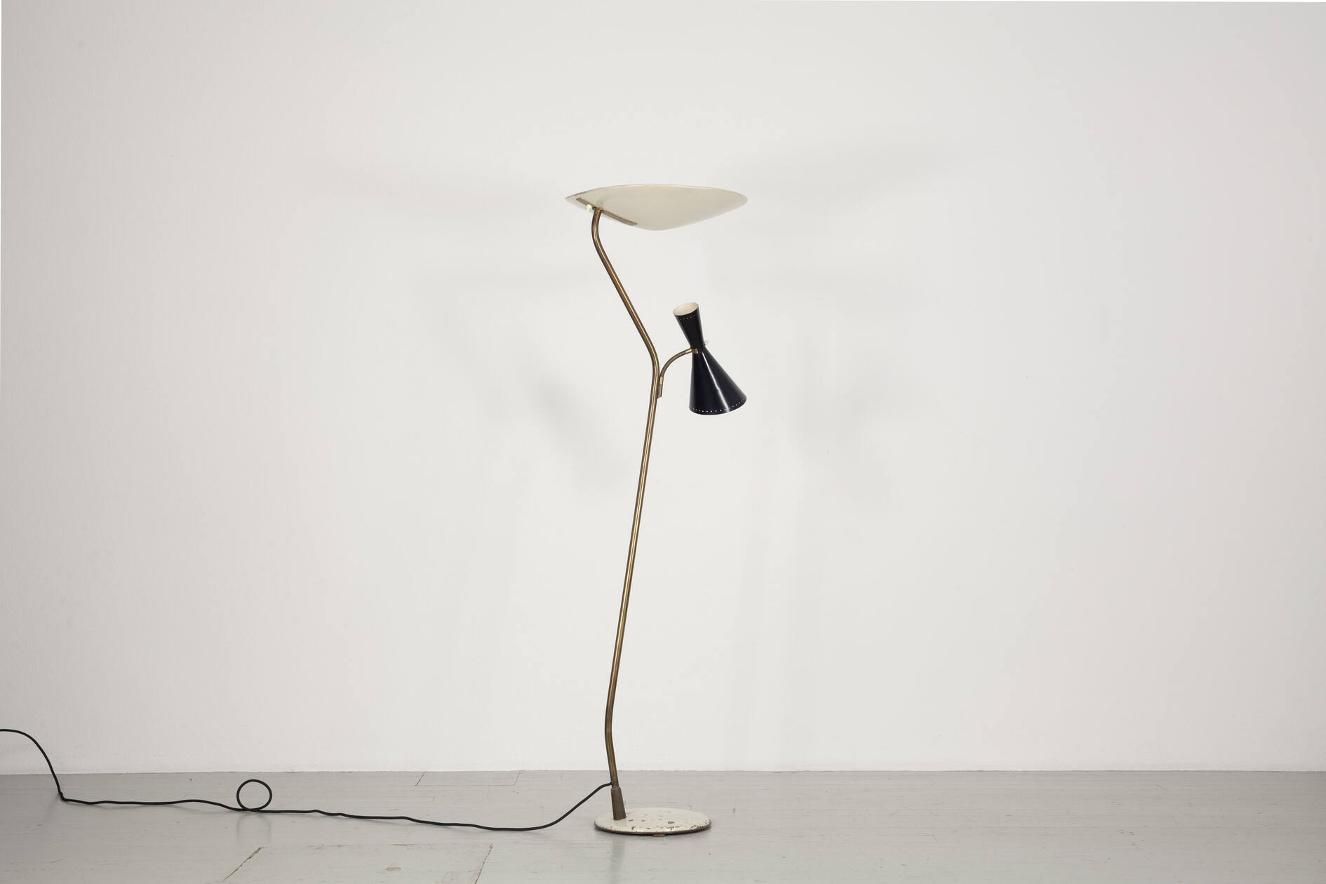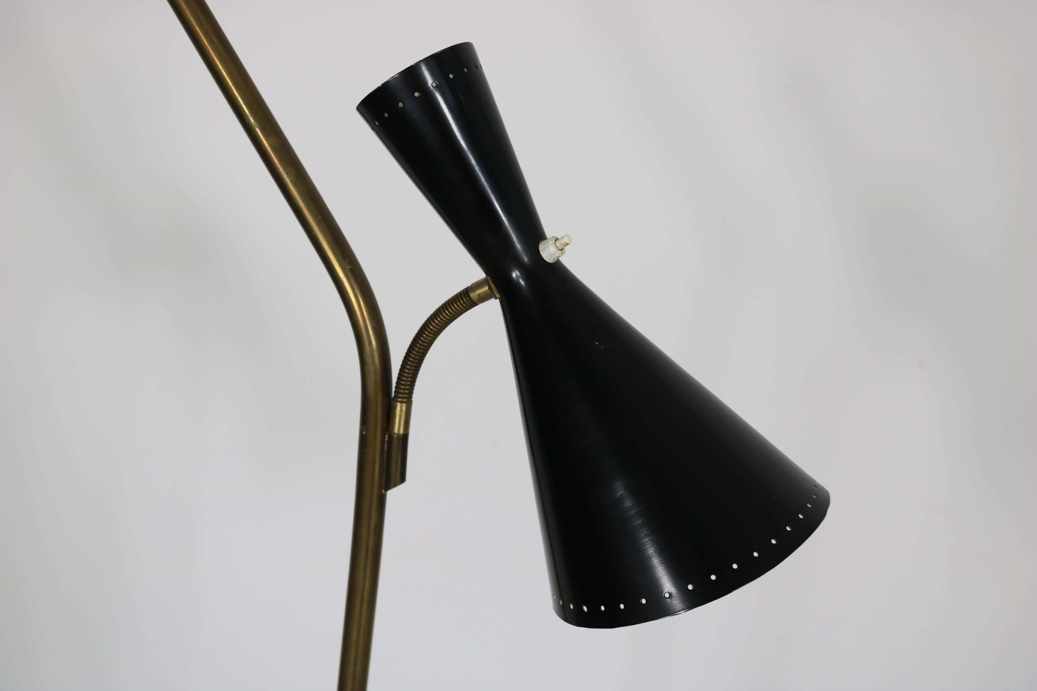 Floor Lamp - Manufactured by Eberth Zürich, Switzerland, 1950s. This brass floor lamp has lacquered metal shades with 2 functions - as an uplight and as a reading light.